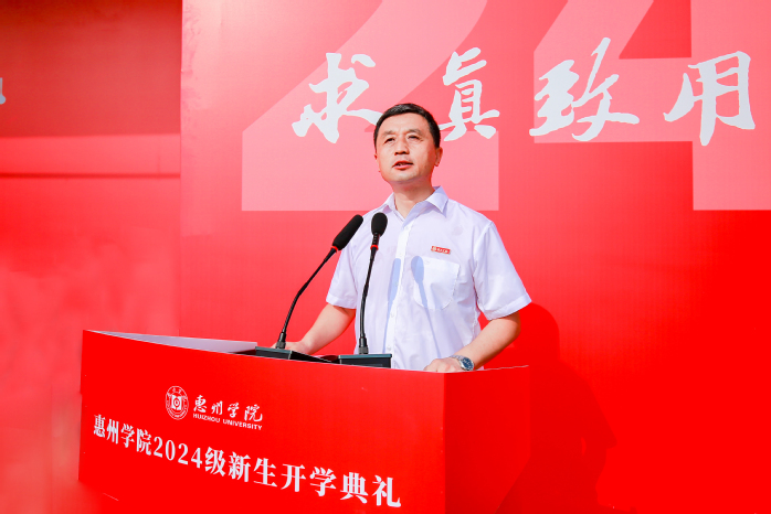 典礼上,校长王胜以《挺膺担当绘青春,强国有我启新程》为题为同学们上开学第一课。他指出,惠州学院办学78年来,秉承“敦重明辨、求真致用”的校训,崇文厚德、薪火相传、继往开来,为国家培养了近20万多名优秀人才。近年来学校各项事业的快速发展,为学生成长成才提供了良好的环境滋养。