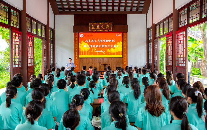 本网讯 “先生之学识才德,名扬杏坛,吾等后生欲投先生门下,愿执弟子之礼……”9月14日,我校在丰湖书院举办马克思主义学院2024级新生“开学礼”和“拜师礼”系列活动。马克思主义学院党政领导班子、教师代表和全体2024级新生等近100人出席活动。