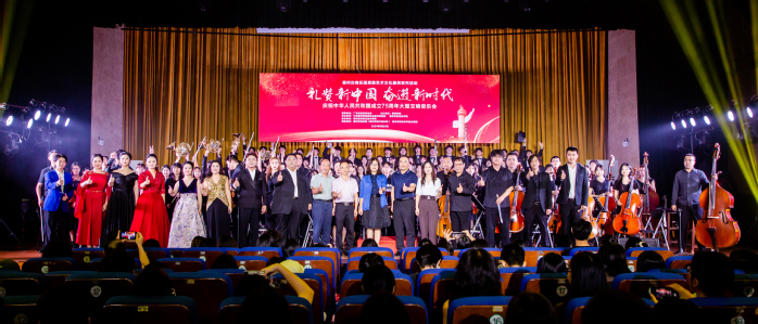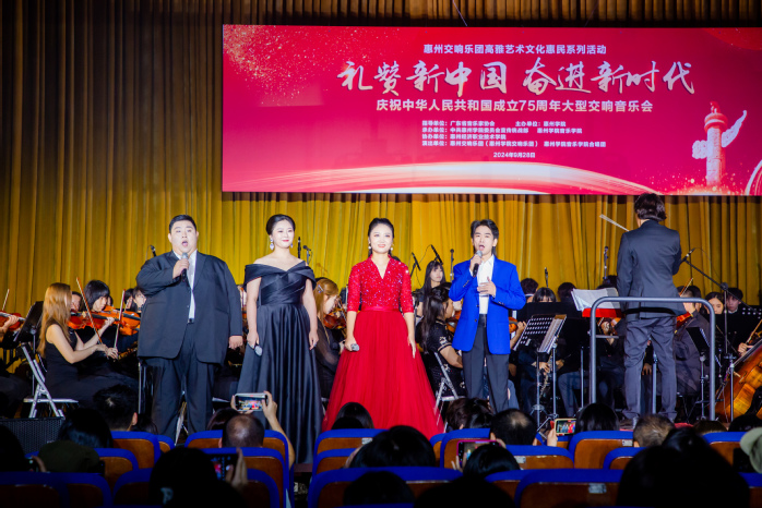本网讯 为庆祝中华人民共和国成立75周年,提高师生美育素养,9月28日晚,由广东省音乐家协会指导、惠州学院主办、惠州学院宣传统战部和音乐学院共同承办的惠州交响乐团高雅艺术文化惠民系列活动“礼赞新中国,奋进新时代——庆祝中华人民共和国成立75周年大型交响音乐会”在我校鹅城会议厅隆重上演,校党委副书记车小真、相关单位负责人、师生代表等600余人观看演出。