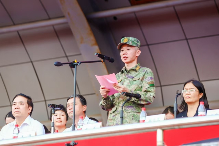 校党委副书记、校长王胜在闭幕式上发表讲话,他代表学校向承训单位惠州军分区、全体教官及军训保障人员表达了诚挚的谢意,并对2024级学生的军训成果给予了充分肯定。王胜表示,我校历来高度重视学生军训,将其作为执行党和国家战略决策的重大政治任务,作为落实立德树人根本任务的一项重要工作抓实抓好,军事训练也是淬炼品格、磨砺意志的重要教育环节。他寄语学生们继续发扬军训期间的优秀意志品质,勇攀知识高峰,不惧生活挑战,勇担历史重任,立报国之志,赓续红色血脉,做时代新人;崇敦重之德,继承光荣传统,做明辨之人;求至真之学,传承奋斗精神,做致用之人。