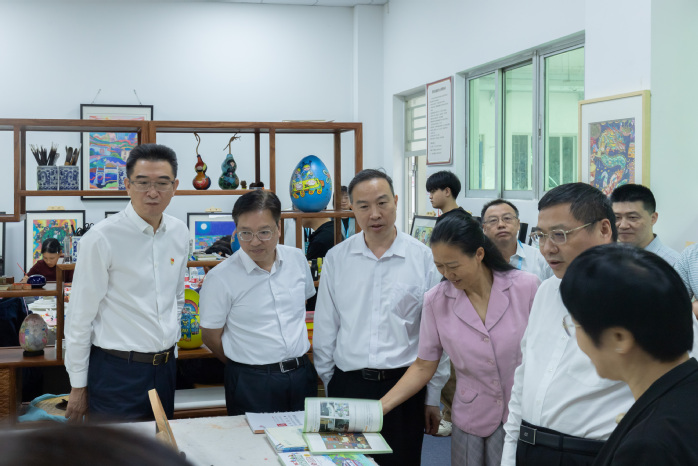 随后,调研组前往龙门农民画科普教育基地参观考察。龙门农民画科普教育基地是我校美术与设计学院持续推动龙门农民画传承与创新发展的重要成果,调研组听取了基地负责人关于龙门农民画保护、传承与传播工作的汇报,参观了农民画作品展示区,对我校在中华优秀传统文化传承与创新方面所做的努力表示肯定。