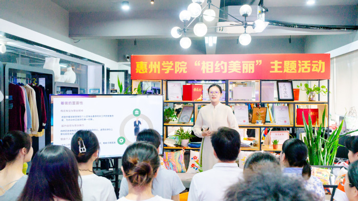 活动最后,刘海金老师为到场的教师和学生提供了一套实用的百搭穿搭公式,并进行了专业的色彩测试,旨在帮助大家发现最适合自己的服装色彩,以增强自信心和提升个人形象。