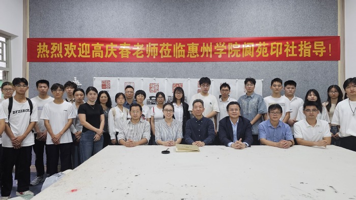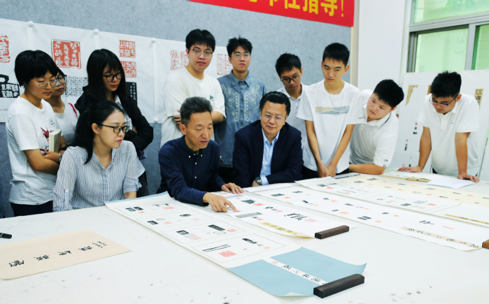 讲座结束后,高庆春先生受邀前往阆苑印社,对同学们的篆刻作品进行现场辅导。