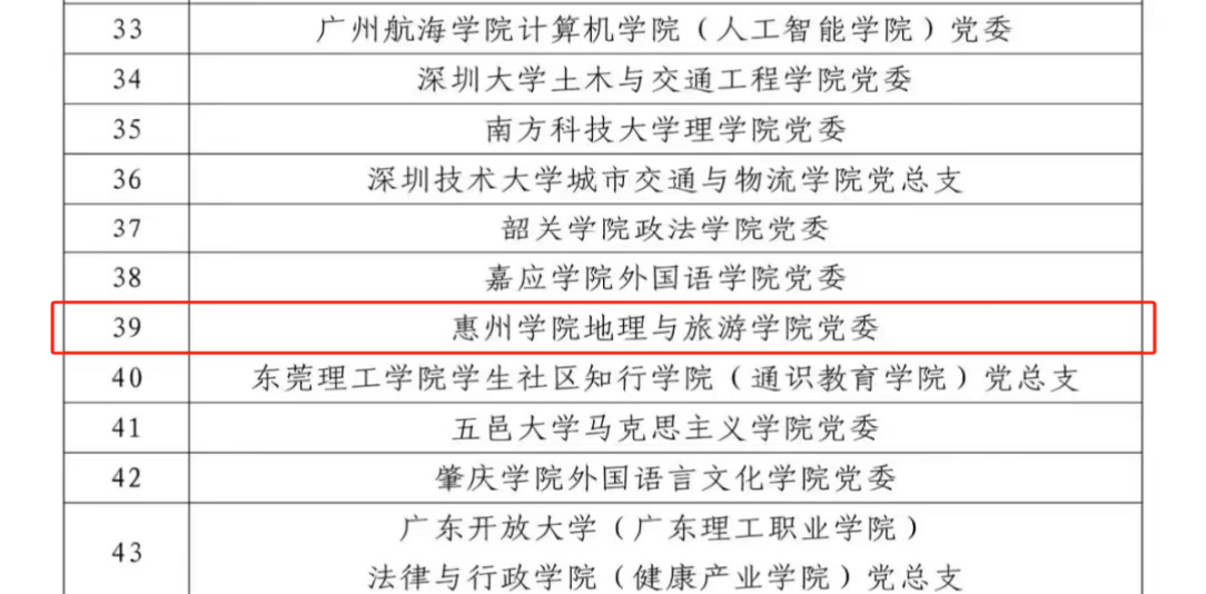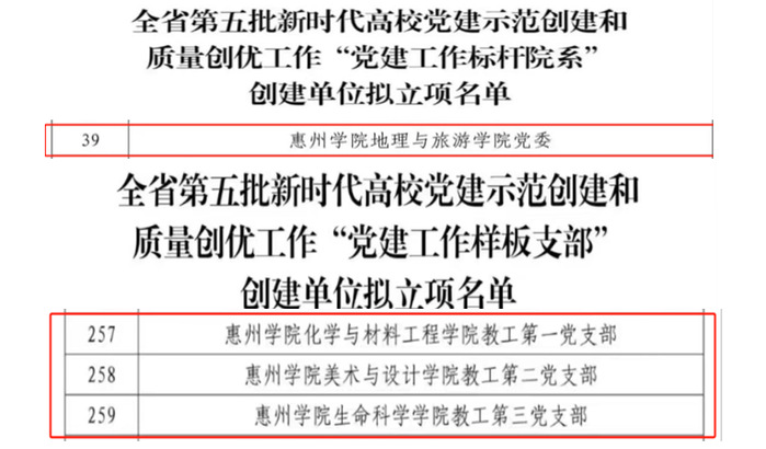 本网讯 近日,中共广东省委教育工委公示全省第五批新时代高校党建示范创建和质量创优工作(以下简称党建“双创”)评审结果,我校地理与旅游学院党委入选“全省党建工作标杆院系”创建单位。化学与材料工程学院教工第一党支部、美术与设计学院教工第二党支部和生命科学学院教工第三党支部入选“全省党建工作样板支部”创建单位。