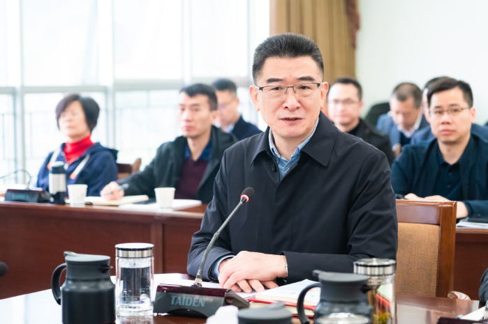 校党委副书记、校长王胜领学全省高质量发展大会精神。
