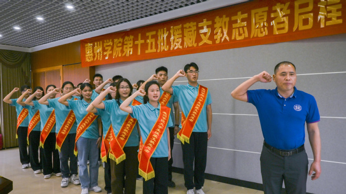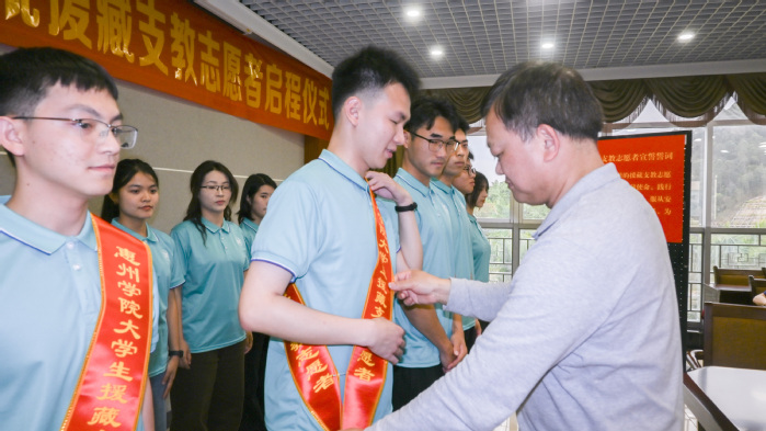 学生工作部负责人胡萍对全体支教学生用实际行动支持学校援藏工作表示感谢。她指出,学生援藏支教是学校思想政治教育工作的重要载体,希望更多惠院学子奔赴基层,将青春之花绽放在祖国最需要的地方。她希望支教学生做到五个“对得起”,一是对得起学校的选择,在助推朗县教育事业的发展中,要以高度的责任感和优良的素质展现惠院学子风采,争当爱国主义教育和民族团结教育的践行者、宣传者和传播者。二是对得起藏区的期待,要珍惜支教机会,主动作为,结合自身专业优势,开展丰富多彩的教育教学活动,促进朗县学生全面发展。三是对得起父母的期盼,要敢于主动吃苦,努力汲取高原土壤养分,在援藏支教实践中涵养进取品格,厚植家国情怀。四是对得起队员的信任,要珍惜支教队队员彼此间的缘分,强化集体意识和团队协作,互帮互助团结友爱。五是对得起自己的承诺,要积极传递爱心、践行志愿精神,敢于直面困难和挑战,不断锤炼师德修养,提升教学技能。