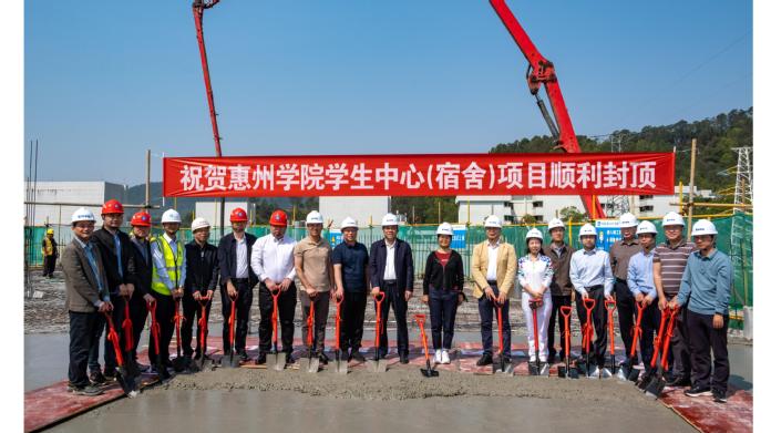 本网讯 3月23日,我校举行学生中心(宿舍)主体封顶仪式。副校长刘国栋、魏晓慧,宣传统战部、学生工作部、财务部、资产设备管理部、总务后勤部、保卫部、现代教育技术中心等相关部门负责人,项目施工单位、监理单位及设计单位负责人参加仪式。仪式由总务后勤部负责人主持。