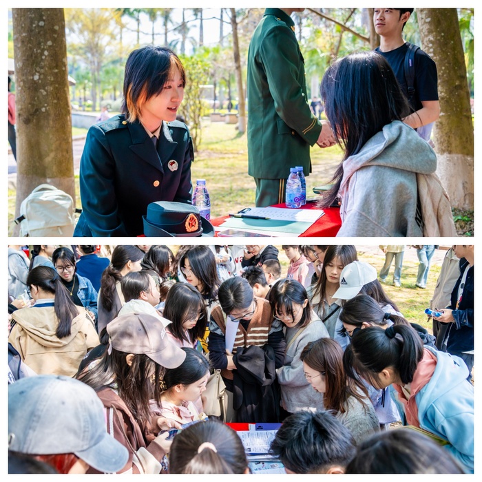 在招聘会现场,还特别设置了政策咨询、简历诊断、入伍咨询专区。在政策咨询专区,来自惠州市人社局、博罗县人社局、惠东县人社局的工作人员为毕业生和用人单位详细宣传高校毕业生就业创业政策和相关补贴政策。在简历诊断专区,中国教育在线职业生涯规划师和我校辅导员为毕业生提供简历修改、AI优化简历服务,学生们还可体验AI模拟面试。在应征入伍政策咨询处,我校退役士兵为毕业生解答入伍条件、优惠政策以及退役安置等相关问题。他们用自己的亲身经历,鼓励毕业生积极响应国家号召,投身军营,报效祖国。