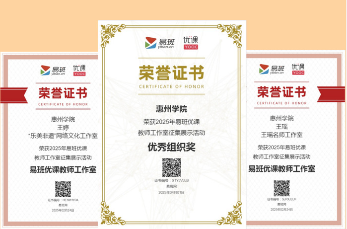 本网讯 近日,教育部易班发展中心公布2025年易班优课教师工作室征集展示活动评审结果。我校计算机科学与工程学院辅导员王婷、马克思主义学院教师王瑶的两个工作室获得推荐,进入展示环节,同时学校荣获优秀组织奖。