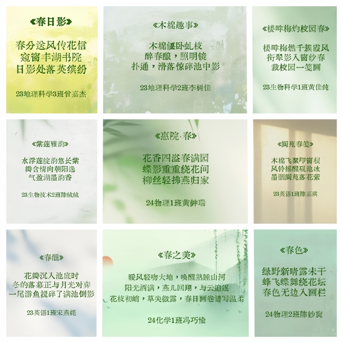 来自地理与旅游学院的陈同学说道:“在民艺美育工作坊押花活动中,我增长了见识,也深深地感受到了传统文化的魅力,这是一次和非遗与传统美的邂逅,下次还来!”“在春分植树活动中,我不仅感受到了劳动的快乐,更体会到了保护校园环境、传承绿色文化的重要性。每一棵树苗都是我们对未来的期许,希望它们能茁壮成长,就像我们对美好生活的期望一样。”美术与设计学院王同学说道。马克思主义学院参加摄影比赛的张同学感叹:“通过镜头,我发现了校园里那些被忽视的美。无论是校园建筑还是同学们脸上的笑容,都是春日惠院最美的剪影。”