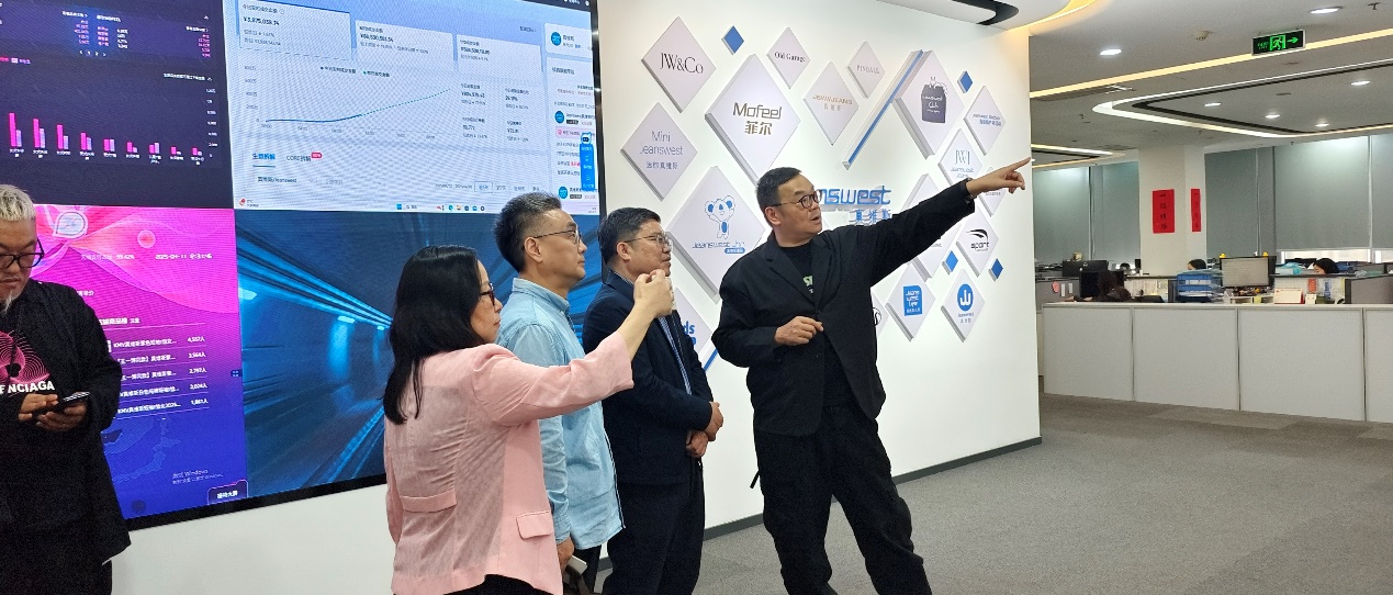 当日上午,杨明品在我校原党委副书记罗川山、文学与传媒学院院长陈梦等陪同下,实地考察了未来视听产业学院合作单位旭日商贸(中国)有限公司。在惠州真维斯电贸分公司总经理刘伟文的引导下,调研组重点参观了品牌生态圈协同创新中心,深入了解校企共建的真维斯卓越人才特色班实施成效。杨明品高度评价了“校企合作”教育模式,他认为该模式非常值得推广,为学生提供了一个良好的实践平台。