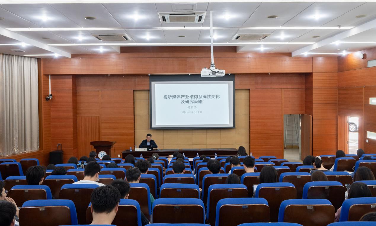 下午4点,文城视频会议厅内座无虚席。杨明品以“视听产业结构性变革及其研究策略”为题,为我校文学与传媒学院师生、省人文社科重点基地—文化传承与数字传播创新研究中心、省级现代产业学院—未来视听产业学院骨干成员带来了一场精彩的学术盛宴。