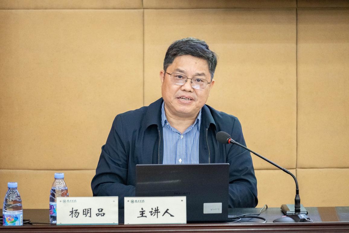 本网讯 4月11日,国家广播电视总局发展研究中心原副主任、正高二级研究员杨明品应邀做客我校东江大讲堂,围绕视听产业变革与创新发展展开专题调研与学术交流。