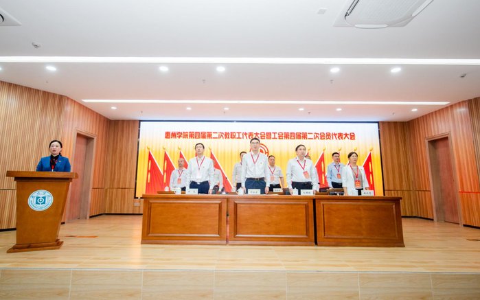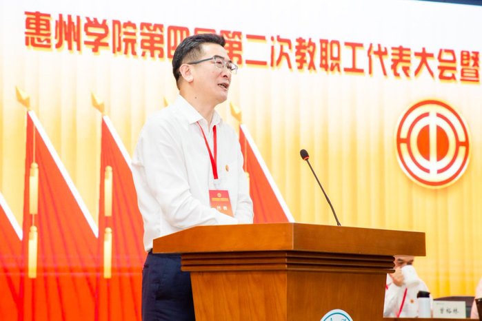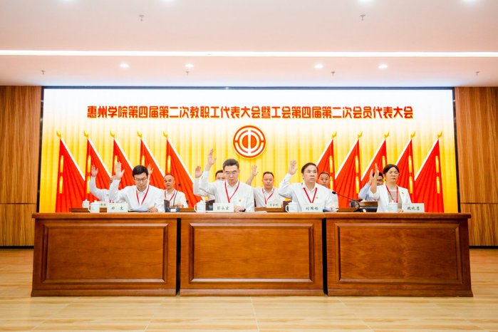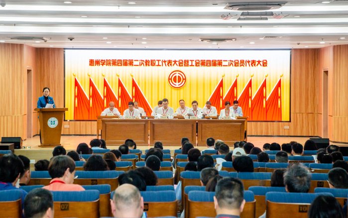 本网讯 4月12日,惠州学院第四届第二次教职工代表大会暨工会第四届第二次会员代表大会在旭日科技大楼A座201报告厅顺利召开。校党委书记彭永宏,副校长刘国栋、郑文、魏晓慧等200余名代表齐聚一堂,共商学校高质量发展大计,为高水平应用型大学建设汇聚智慧、凝聚力量。