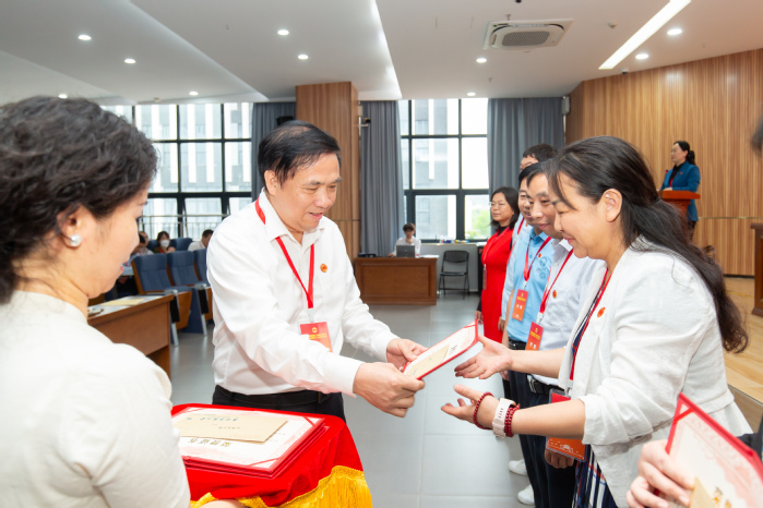 会议穿插举行了学校四届二次“双代会”优秀提案表彰仪式,刘国栋为七位优秀提案人和集体颁发了证书和奖金。