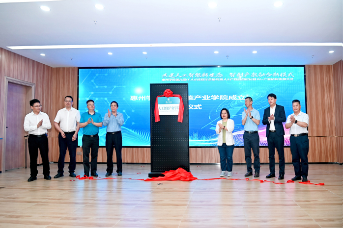 与会领导嘉宾共同为“人工智能产业学院”揭牌,标志着惠州学院“人工智能产业学院”正式成立。