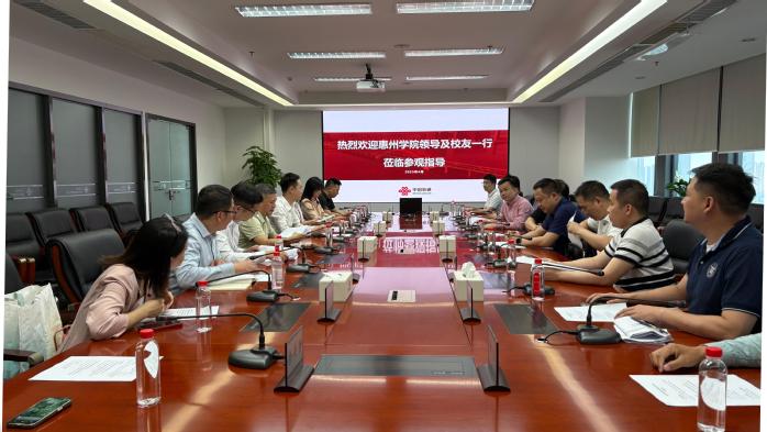 本网讯 为扎实推进建校80周年校庆筹备工作,加强学校、校友会与片区校友企业之间的紧密联系,凝聚校友力量共谋发展,4月18日下午,副校长刘国栋携惠州学院校友会惠州市直、惠城、仲恺片区校友联络服务处主任张远良等13名校友一行,走进中国联通惠州分公司、惠州市智慧大数据有限公司,开展一场以AI智能与数字化转型为主题的交流活动。学校党政办公室、计算机科学与工程学院相关负责人陪同座谈及走访。