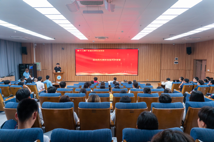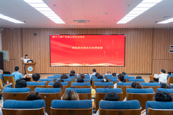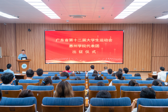 本网讯 5月7日下午,广东省第十二届大学生运动会惠州学院代表团出征仪式在惠州学院旭日科技楼A座302报告厅举行。副校长郑文,教务部、学生工作部主要负责人,体育学院领导班子成员、代表团全体教练员、运动员出席本次出征仪式。仪式由教务部负责人主持。