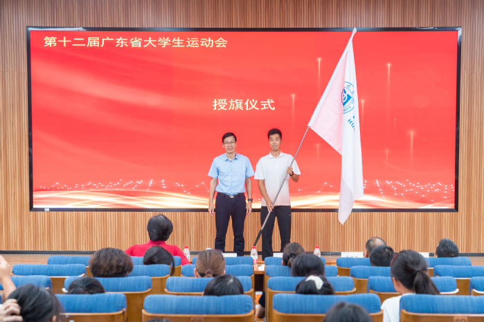 郑文发表讲话,并向运动队代表授旗。他代表学校向即将出征省大学生运动会的全体运动员及教练员们表示祝贺。他表示,学校一直高度重视体育工作,通过深化体育教育教学改革,完善学生体育竞赛体系,在持续推进大项建设基础上,挖掘潜优势项目,做出特色、做出亮点,切实发挥体育在立德树人中的重要作用。他鼓励所有参赛运动员继续发扬顽强拼搏的精神,奋勇向前,敢于争先,为校争光。