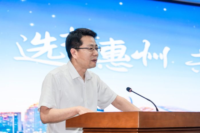 张龙作惠州发展环境宣讲推介,他从选择城市的机遇、环境、生活着手,为毕业生们详细介绍了惠州深厚的制造业基础、持续发展的新质生产力、交融开放的多元文化、优越的生态环境、便利的区位优势和暖心的服务保障。他指出,惠州依托“2+1”现代产业集群和“3+7”产业园区,持续做大科技创新平台,持续做强产业企业实力,持续突破新兴未来产业,聚力建设“百千万工程”示范样板——环南昆山-罗浮山引领区,加快发展生产性服务业,不断优化人才政策体系,以最大诚意为青年人才搭建成长舞台。最后,张龙希望同学们抓住机遇,积极参加“百万英才汇南粤”招聘会,书写更多更精彩的“惠州故事”。