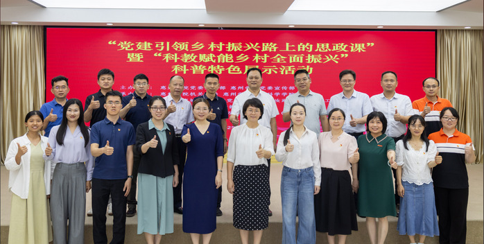本网讯 为深入学习贯彻习近平总书记关于“三农”工作的重要论述,进一步加强高质量党建引领,以教育、科技、人才三位一体助力乡村振兴发展,5月29日下午,我校与惠城区汝湖镇党委联合开展“党建引领乡村振兴路上的思政课”暨“科教赋能乡村振兴发展”科普特色展示活动,我校组织部(机关党委)、宣传统战部,生命科学学院班子成员、师生代表,全国、全省党建工作样板党支部书记代表,汝湖镇党委政府有关负责人、惠州市驻汝湖镇帮镇扶村工作队有关负责人,汝湖中学教师代表共150余人参加,活动由生命科学学院党委副书记罗传宝主持。