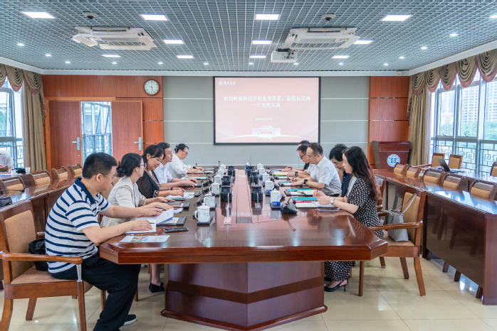 本网讯 6月27日,岭南师范学院副校长吴涛一行来校座谈交流。座谈会由校长王胜主持,副校长魏晓慧,发展规划部、人力资源部、科学技术部、化学与材料工程学院等部门相关负责人参加座谈会。