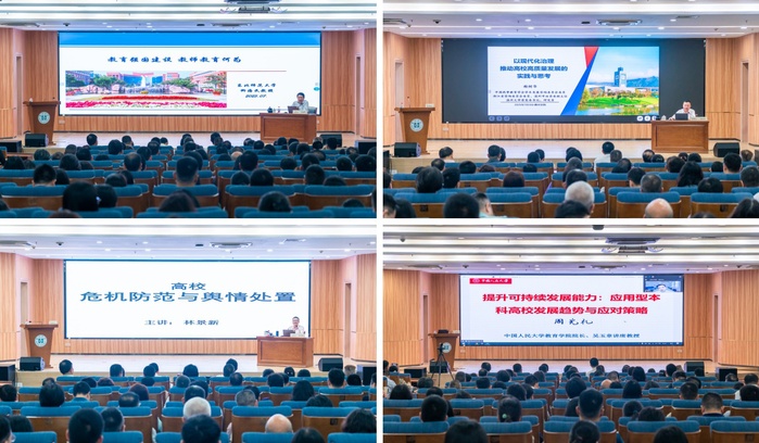 本次培训邀请了全国业内知名专家分别作教师教育改革、治理能力提升、危机管理、发展战略谋划主题讲座。其中,东北师范大学柳海民教授系统阐释教育强国背景下高质量教师教育体系建构路径;温州大学原党委书记谢树华结合办学实践,解析以现代化治理推动地方高校高质量发展策略;华南危机管理研究院副院长林景新通过典型案例,详解高校舆情处置实务;中国人民大学周光礼教授深度剖析应用型本科高校可持续发展的创新策略。