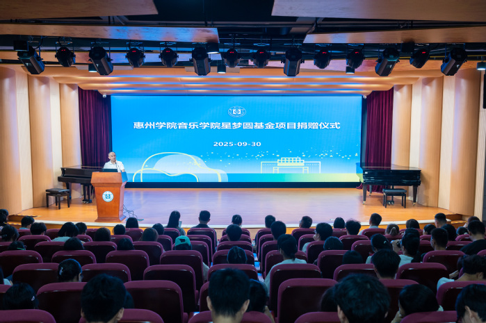陈茵在致辞中表示,“星梦圆”寓意助力音乐学子圆梦艺术舞台,公司创始人作为惠州学院校友,始终心怀母校培育之恩,此次捐赠既是感恩回馈,也寄托了对音乐教育事业的支持与期待。她希望以此次捐赠为起点,未来在艺术实践、课程共建等方面与音乐学院开展更深层次的合作,共同助力学生成长成才。