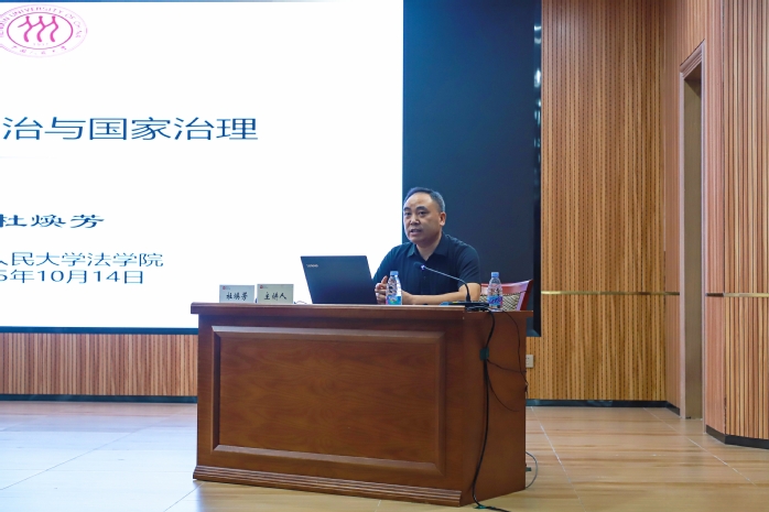 报告中,杜焕芳教授围绕“涉外法治与国家治理”主题,从涉外法治的演进发展与核心要义、涉外法治在国家治理中的重大意义以及加快推进涉外法治建设的路径等三个方面展开系统阐述。他详细介绍了“涉外法治”提出的时代背景与演进历程,从四个层面对“涉外法治”概念进行深入剖析,并指出,涉外法治建设事关全面依法治国、国家对外开放大局、外交工作大局及国际争端预防与解决,是国家治理现代化的重要支撑。围绕如何推进涉外法治建设,杜焕芳教授提出应加强党对涉外法治工作的领导,加快重点领域、新兴领域和涉外领域立法,加快构建我国法域外适用体系,完善涉外司法管辖体系,深化执法司法国际合作,提升涉外法律服务水平,并积极参与国际规则制定。