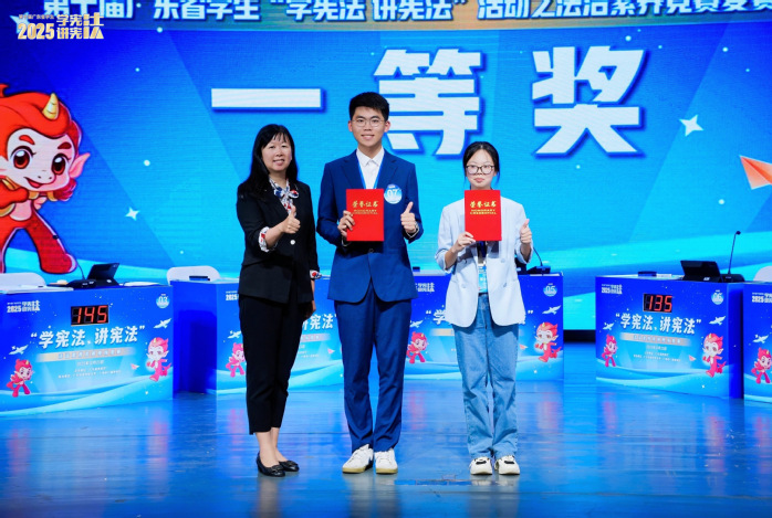 本网讯 10月23日,第十届广东省学生“学宪法·讲宪法”法治素养竞赛现场复赛圆满落幕。我校2024级法学专业郑心妍同学凭借扎实的专业基础与出色的现场发挥,一路过关斩将,最终荣获高校组一等奖,实现我校在该项省级赛事高校组一等奖“零的突破”。