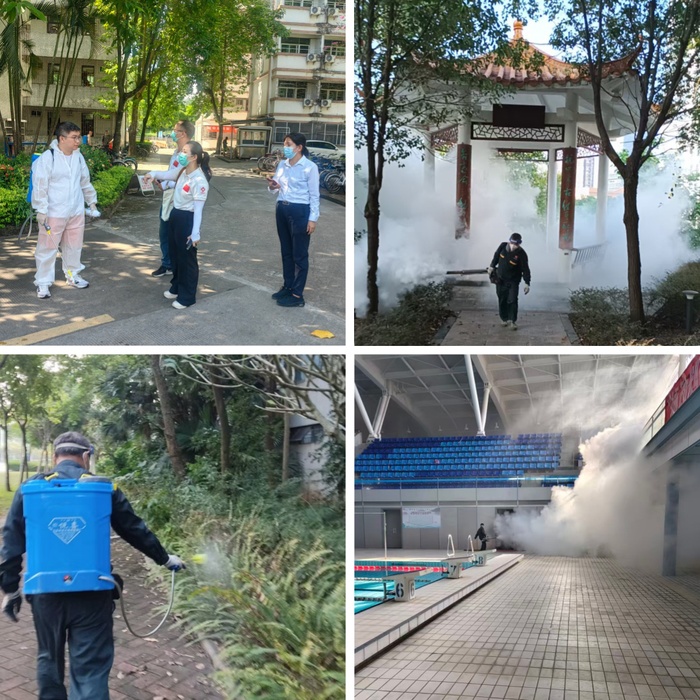 在协同机制方面,学校强化校地联动,与惠城区、河南岸街道建立紧密的联防联控机制。地方部门累计调派专业设备70余台次,支援人力400余人次,协同开展大规模环境清洁与集中消杀,形成了齐抓共管的工作合力。此外,学校统一配发蚊香、垃圾袋、手套、口罩、垃圾夹等必备物资,做到储备充足、发放及时,为爱国卫生运动深入开展提供了坚实保障。