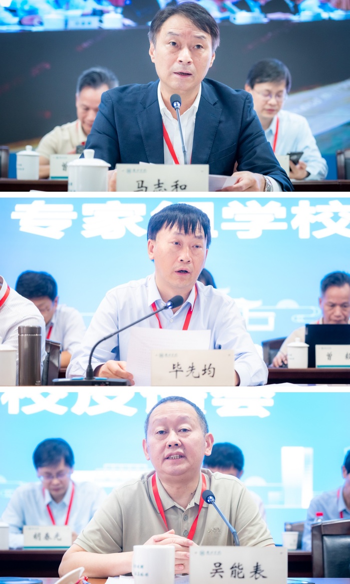 毕先均、吴能表、马志和三位组长分别反馈了三组专家现场考查的整体情况。他们对学校及三个专业的成效和特色亮点给予了高度肯定,认为学校教师教育底蕴深厚,在教师教育方面取得了较好的成效,三个认证专业在专业建设方面各具特色,构建校地教师教育共同体,人才培养成效明显,并从反向设计、正向施工、底线评价等方面全面反馈了三个专业存在的问题及改进建议。