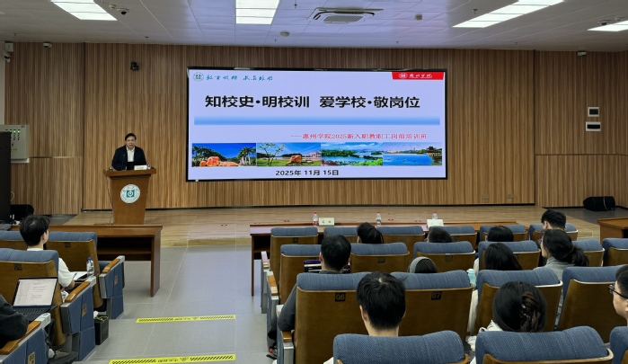 本网讯 11月15日,惠州学院2025年新进人员入职培训开班仪式在旭日科技大楼A座302报告厅举行。学校副校长刘国栋出席仪式并作专题讲座,教师发展中心、人力资源部负责人及70余名新进人员参加活动,共同开启新进人员的“惠院成长第一课”。