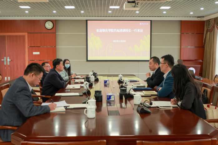 本网讯 11月20日,肇庆学院副校长肖起清率队来我校考察交流,双方围绕“十五五”规划编制、学科建设提质等核心议题召开专题座谈会。校长王胜出席会议并致辞,副校长魏晓慧主持座谈会,学校科学技术部、发展规划部等相关职能部门负责人参加交流。