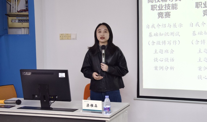 梁雅晶以“勤学多思,百炼功深——辅导员素质能力大赛备赛应赛策略”为主题,围绕辅导员业务知识、理论素养、学生个案分析与应对策略等方面展开系统讲解。她结合辅导员素质能力大赛(训练营)国赛和省赛的考核规则与要点做具体分析,强调辅导员要回归本职工作、勤学多思,把日常工作与备赛有效结合。她指出,辅导员应不断提升政策理解力、个案分析力和教育引导力,把握理论素养的高度、业务知识的准度、熟悉学生的温度、案例分析的深度。她通过真实情境模拟,引导辅导员思考如何把握“个人与群体”“理想与现实”“内在与外在”“知情意信行”四对关系,提升综合研判与应急处置能力。