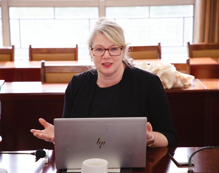 Leigh Fleming对我校的热情接待表示感谢,并介绍了哈德斯菲尔德大学的办学历史、理念以及计算机与工程学院的专业设置与教学特色。她表示,该校办学历史悠久,在长期与区域产业互动中形成了注重实践、贴近需求的应用型人才培养模式。计算机与工程学院以科研反哺教学,将行业技能融入课程体系,贯穿人才培养全过程,建有多个先进研究实验室,所有专业均获英国工程技术学会等权威机构认证,科研与教学质量享有国际声誉。她期待与我校建立合作关系,推动开展实质性合作项目。