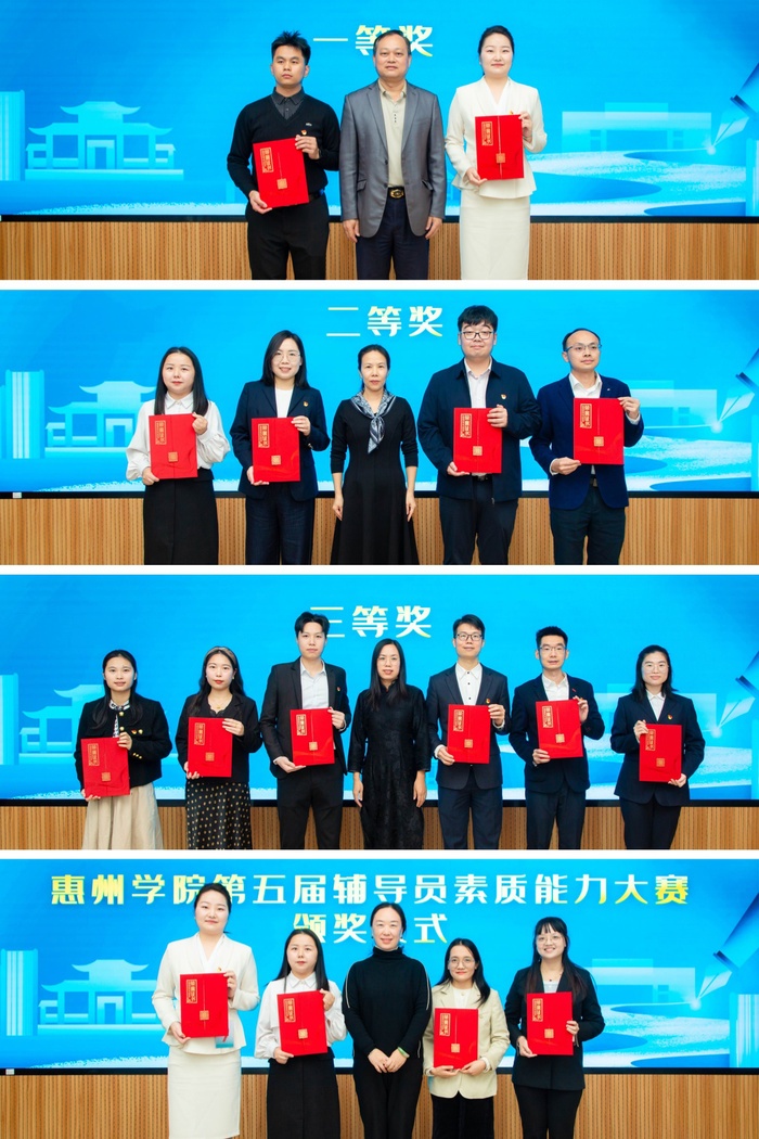 本网讯 12月3日下午,惠州学院第五届辅导员素质能力大赛决赛在旭日科技大楼鹏华会议厅举行,大赛由学生工作部、教师工作部、工会主办。本次大赛旨在深入学习贯彻党的二十届四中全会精神,以赛促建、以赛促学,全面提升辅导员队伍的政治素质、业务能力与综合素养,进一步推动学校思想政治工作高质量发展。