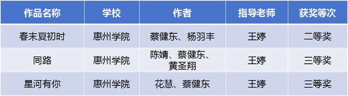 本网讯 近日,广东省教育厅正式公布2025年“立志·修身·博学·报国”主题教育系列活动评选结果。我校师生凭借深厚的专业素养、鲜活的创作理念与浓厚的家国情怀奋勇争先,在全省众多参赛单位中脱颖而出,一举斩获13项荣誉,其中一等奖2项、二等奖3项、三等奖8项,充分展现了惠院师生良好的精神风貌与扎实的综合素养。