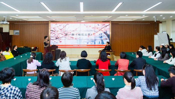 作为我校深耕美育教育、传承中华优秀传统文化的重要实践,本次活动以 “唐韵琴画・衣香茗心”为主题,由我校服装学院杨雪梅教授、岳欧璐博士联袂呈现,通过“观画、听琴、悟道”三大篇章,带领现场观众跨越千年时光,沉浸式感受唐代美学的独特魅力与当代价值,搭建起两校协同育人的文化桥梁。