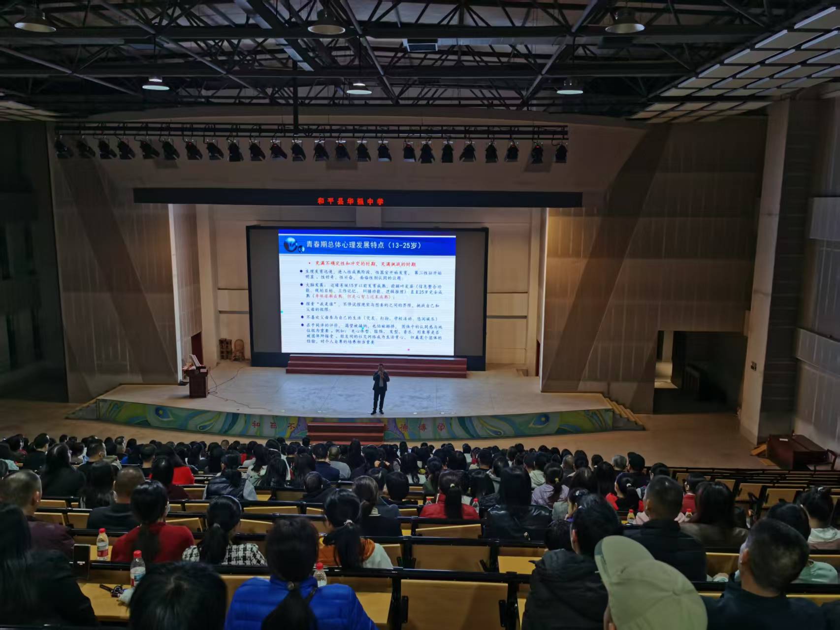 家校共育专题讲座聚焦初中生厌学高频痛点,邀请何资桥倾情主讲,为当地近400名心理教育工作者、学生家长提供专业指导。讲座中,何资桥立足青春期学生心理发展规律,以“现象—根源—对策”为逻辑主线,系统拆解厌学问题成因,精准提炼出触发事件、心理因素、环境因素、家庭因素、生理因素五大核心维度,帮助现场听众厘清问题脉络。针对家长、教师普遍关切的手机成瘾、厌学躺平两大难题,何博士给出针对性解决方案:手机干预坚持“疏堵结合”,通过科学设定数字边界、培育多元兴趣爱好等方式引导学生理性用机;厌学应对则梳理出21项实操举措,涵盖目标拆解、成就感重建、亲子沟通优化等关键领域,为家校协同破解教育困境提供了可直接落地的行动方案,现场反响热烈。