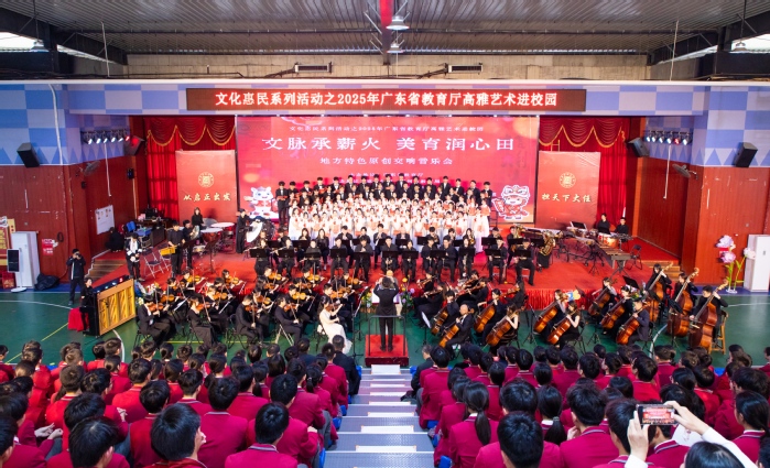 本网讯 12月28日,由惠州学院与惠州市教育局联合主办、博罗县启正学校承办的2025年广东省高雅艺术进校园系列活动——“文脉承薪火,美育润心田”地方特色原创交响音乐会在博罗县启正学校成功举行。惠州学院交响乐团(惠州交响乐团)与音乐学院合唱团联袂演出,为现场带来一场融合本土文化与交响艺术的高水平视听盛宴。惠州市教育局副局长龚茜,惠州学院音乐学院党委书记曾裕林,博罗县教育局副局长林勇,博罗县启正学校党支部书记刘国前、副校长李伟、党支部副书记兼校长助理李红彦等出席活动,与该校600余名师生共同观赏了本场音乐会。