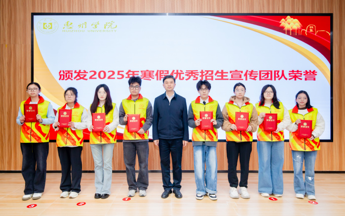 据悉,为发挥朋辈引领作用,拓宽招生宣传渠道,我校组建71支寒假招生宣传队,将于2026年寒假深入高中母校开展宣传工作,覆盖省内21个地市、116所中学。会议现场同步启动“惠院归巢•引航逐梦”2026年寒假招生宣传活动,王胜为宣传队学生代表授旗,勉励同学们当好学校的“代言人”,传递惠院声音、展现学子风采,为学校吸纳优质生源贡献力量。
