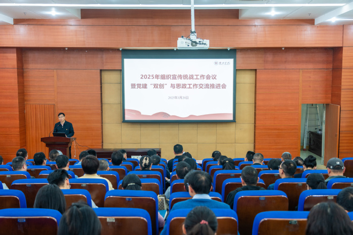 会上,彭永宏肯定了过去一年学校组织宣传统战工作的主要成效,指出了当前面临的问题与不足,并明确下一步学校组织宣传统战工作的重点。面对教育强国建设的新使命、新要求,面对人工智能等科技快速发展的新形势、新挑战,他提出五点要求:一是聚力加强政治建设,推动政治铸魂领航提质争先。落实“以学铸魂、以学增智、以学正风、以学促干”长效机制,推动党的创新理论武装走深走实,确保党的路线方针政策在高校不折不扣得到贯彻。二是聚力推进强基工程,锻造推动学校高质量发展的坚强战斗堡垒。完善组织建设,提升基层党组织的凝聚力和战斗力,为学校的持续发展提供坚实的组织保障。三是聚力立德树人根本任务,加快形成强大思政引领力。进一步完善学校“大思政”工作体系,深化思政教育改革,切实提升思政教育质效,培养德智体美劳全面发展的社会主义建设者和接班人。四是聚力护航中心工作,找准赋能保障改革发展的发力点着力点。围绕学校高质量发展大局,立足教育综合改革、硕士点建设等重点工作,发挥党建工作在把准方向、整合资源、支持保障等方面的重要作用。五是聚力推动改革创新,不断推动党建高质量发展。深化党内制度改革和创新,提升党的组织力和执行力,为推动党和学校的高质量发展提供坚强的组织保障。