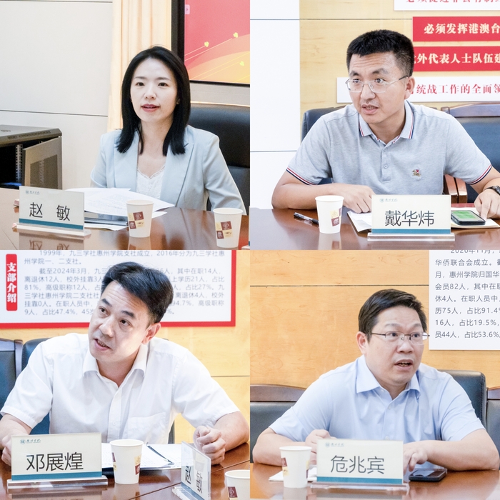 在经验分享环节,民盟惠州学院支部主委危兆宾、九三学社惠州学院二支社主委戴华炜,民盟惠城总支主委赵敏、九三学社惠城支社主委邓展煌等四位代表,结合工作实际分享了参政议政的心得体会。在自由交流阶段,与会人员围绕如何加强组织建设、提升履职能力、服务地方发展等话题展开了热烈讨论。