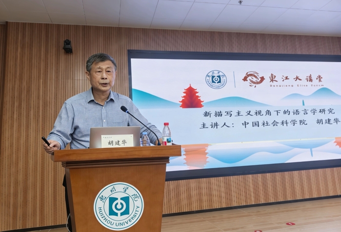本网讯 3月18日下午,中国社会科学院语言研究所二级教授、广东外语外贸大学云山工作室首席专家胡建华教授应邀做客我校东江大讲堂,在旭日科技大楼A座302会议室开展题为“新描写主义视角下的语言学研究”的学术讲座。本次讲座由科学技术部与外国语学院联合主办,200余名师生共同聆听了讲座。