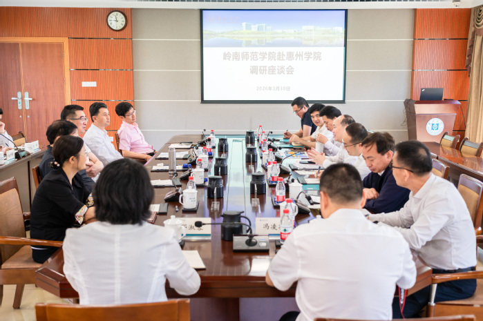 彭永宏对岭南师范学院一行的到来表示热烈欢迎。他表示,两校有着多年良好的合作关系,同为省属地方本科高校,都肩负着扎根地方、服务区域经济社会发展的共同使命。他希望未来两校能进一步深化各领域的交流与合作,充分发挥各自在服务地方教育、产业和文化等方面的特色优势,推动优势互补、协同发展,共同探索地方应用型高校高质量发展新路径。