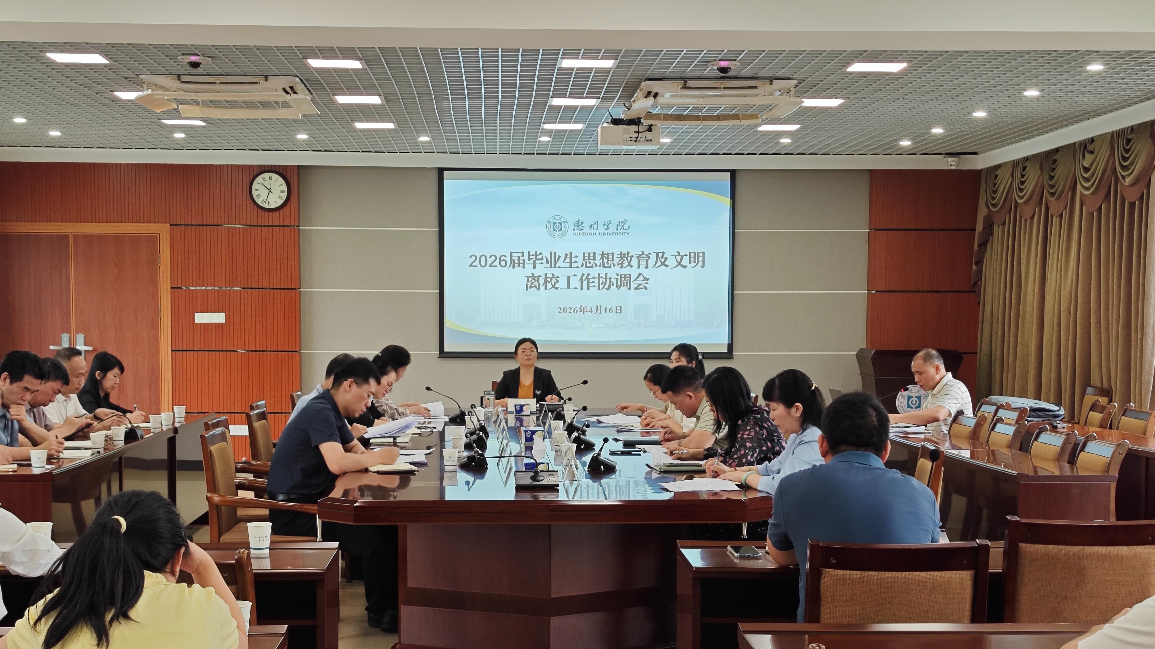 会上,魏晓慧就做好2026届毕业生思想教育及文明离校工作提出三点要求:一是提高政治站位,强化思想引领。要充分认识毕业生思想教育及文明离校工作的重要意义,将其作为大学生思想政治教育的最后一堂课,融入理想信念教育、爱校荣校教育、诚信感恩教育和安全文明教育,引导毕业生树立正确的择业观、价值观,厚植家国情怀,增强责任担当,以积极心态面对人生新阶段。二是压实工作责任,优化服务保障。各职能部门要严格落实分工,坚守“以生为本”的服务理念,聚焦毕业生急难愁盼问题,优化离校手续办理流程,精准开展就业帮扶和心理疏导,重点关注学业困难、就业困难等特殊群体毕业生,用心用情解决其实际困难,让毕业生感受到母校的温暖与关怀。三是强化协同联动,筑牢安全底线。各部门要加强沟通协作,健全工作机制,畅通信息渠道,全面排查毕业季校园安全隐患,强化宿舍安全、消防安全、网络安全和人身财产安全管理,引导毕业生自觉遵守校规校纪,杜绝不文明离校行为,全力保障校园稳定和毕业生安全离校,确保各项工作有序推进、落地见效。